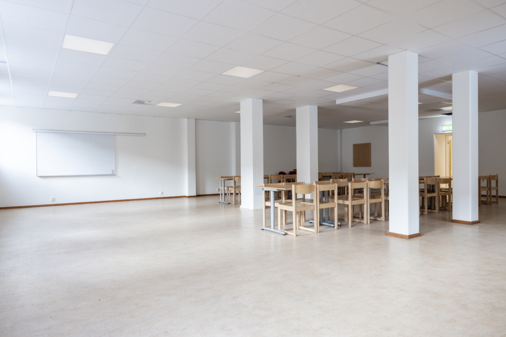 Kvarterslokal Hatten: Allrum med bord och stolar.
